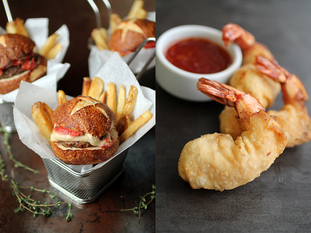 Mini Beef BLT Burger + Firecracker Shrimp