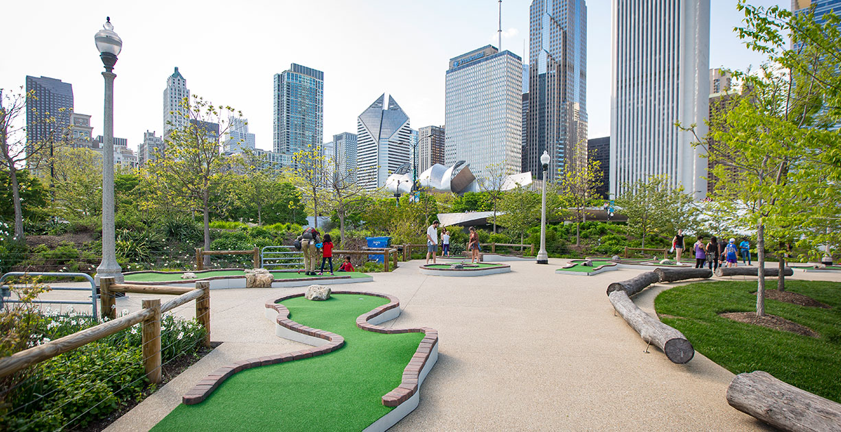 Maggie Daley Park is a 28-acre public park in the Loop community area of Chicago. It is near the Lake Michigan shoreline in northeastern Grant Park where Daley Bicentennial Plaza previously stood. Available for private rental for unique and special social and corporate events, both indoor and outdoor.